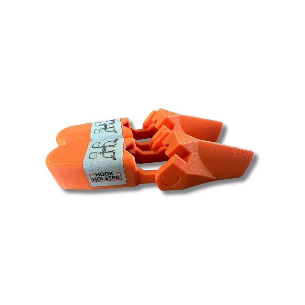 The Hook Holster is a patent-pending gaff guard that offers unmatched safety, durability, and ease of use in the field via its unique 2-part locking design. It solves a long-standing safety problem: traditional guards fall off due to improper fit, leaving gaff spikes exposed and crews at risk.