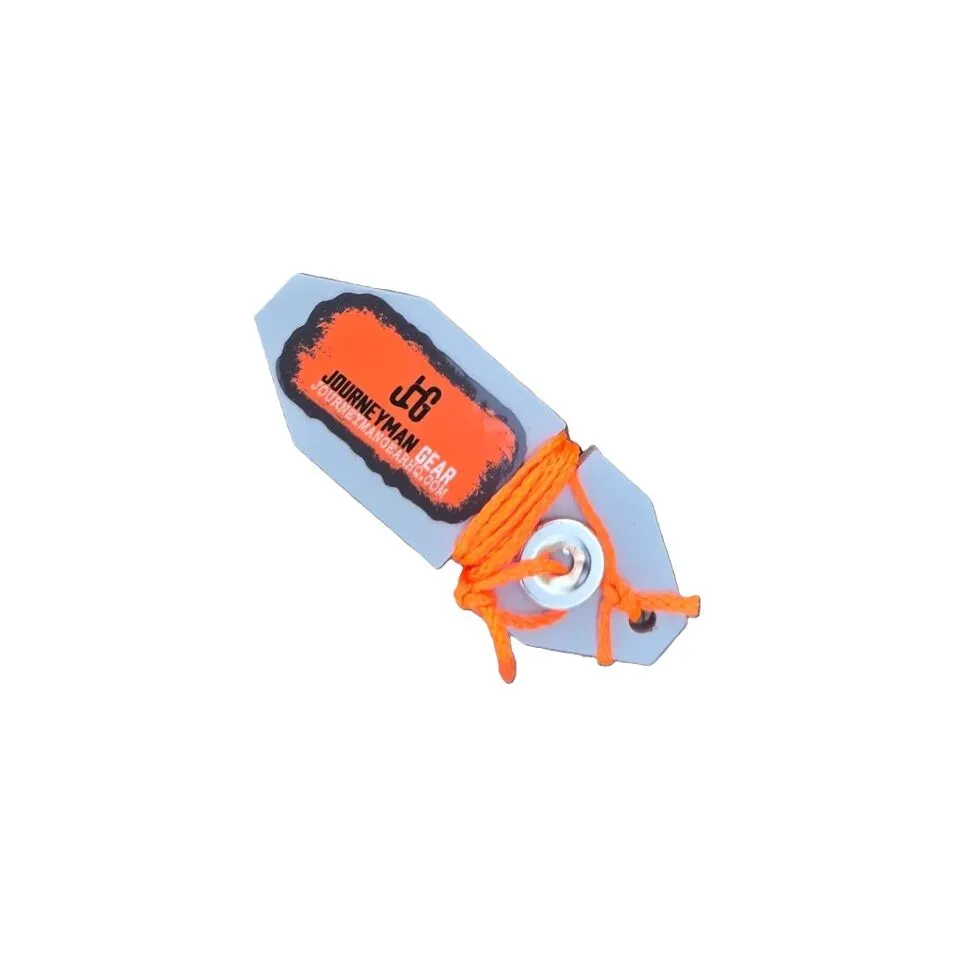 Thesetools are laser cut out of 1/4″ steel and powder coated grey. Journeyman Gear uses a bright orange braided string with a strong 20LB magnet washer attached to the end. This allows the string to be wound up and stuck in place securely between poles. The choice of flat steel is heavy enough to be resistant to windy days but also lay flat in your pocket. This plumb bob can comfortably be carried throughout the day.