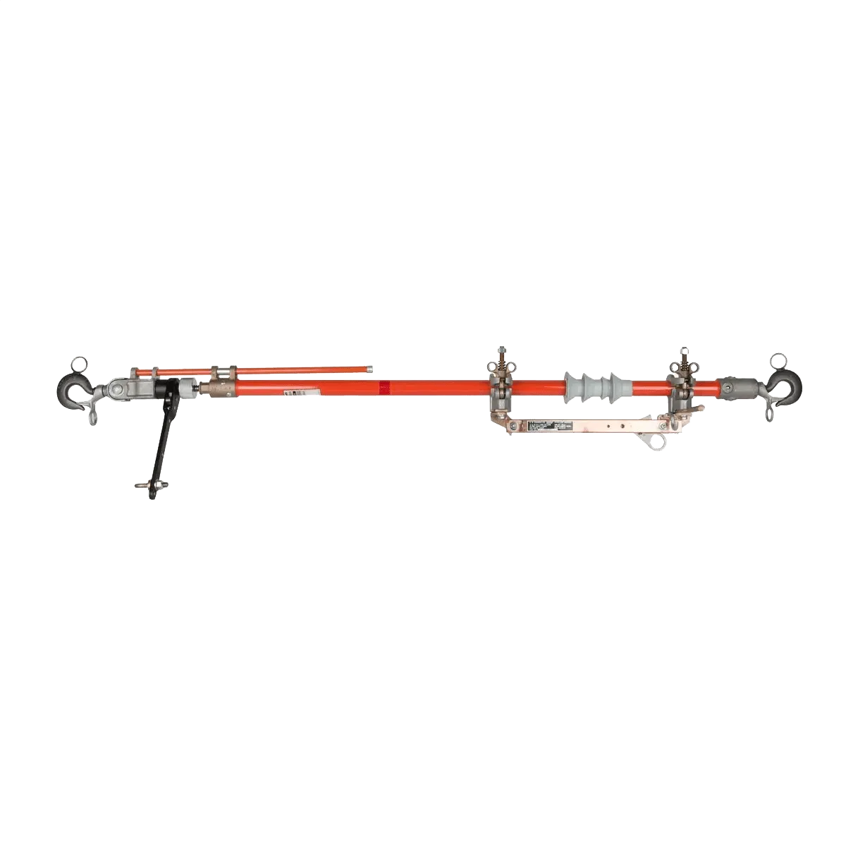 This tool permits a live overhead distribution line to be cut preventing service interruption while the work is being performed. It may also be applied whenever a disconnect switch is needed for temporary sectionalizing. Maximum ratings 35 kV phase to phase, 600 amps. 4,000 lb line tension